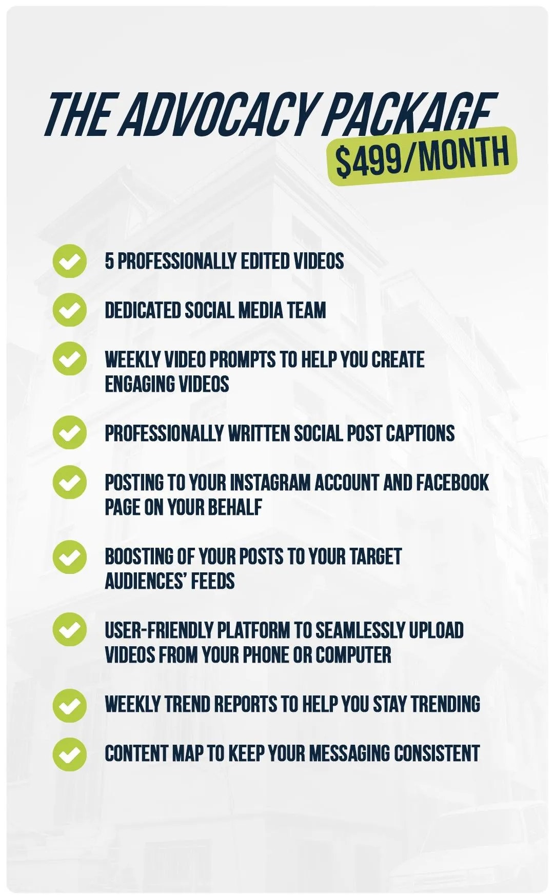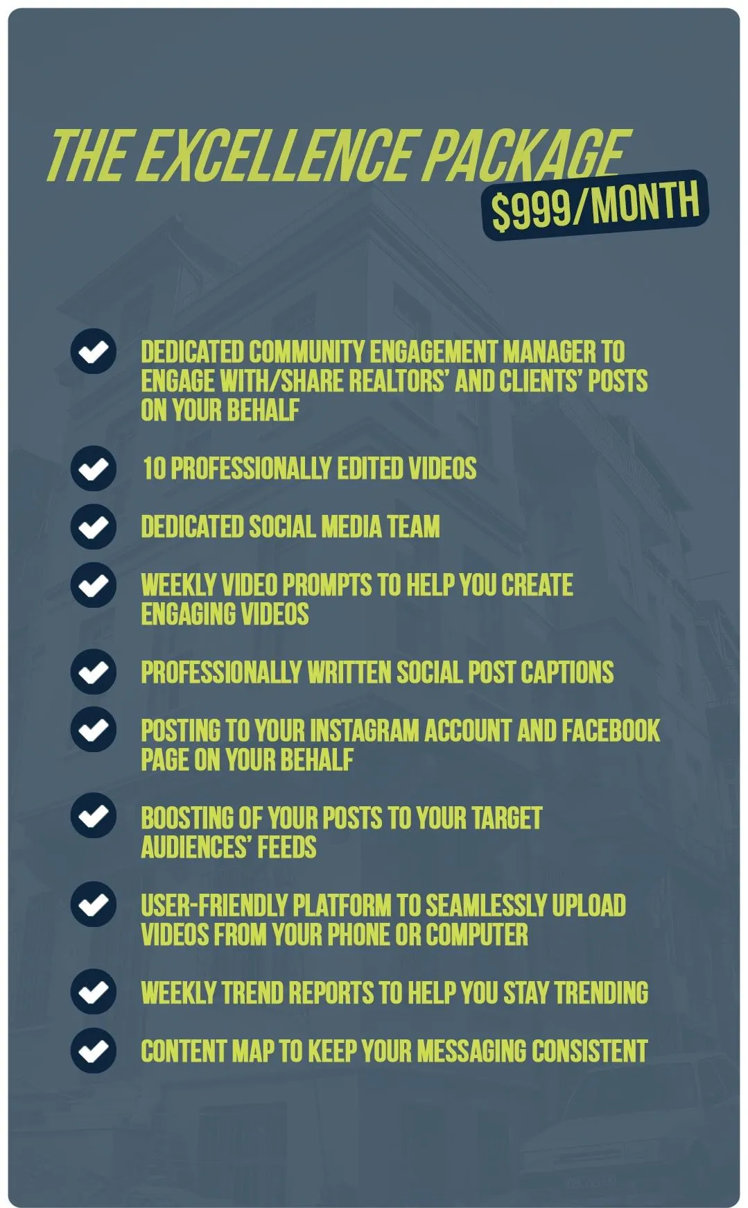 With professionally edited videos, professionally written copy, and posts that actually show up in your clients’ and Realtors’ social feeds, you’re sure to get even more referrals.